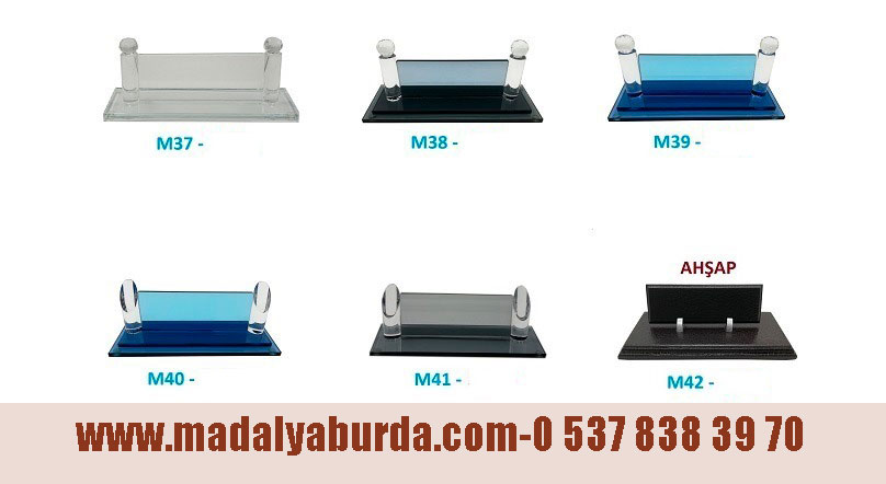 Ahşap ve cam kristal den yapılan ürünler,ön yüz kısmına unvan ve ad yazılarak monte edilir.
